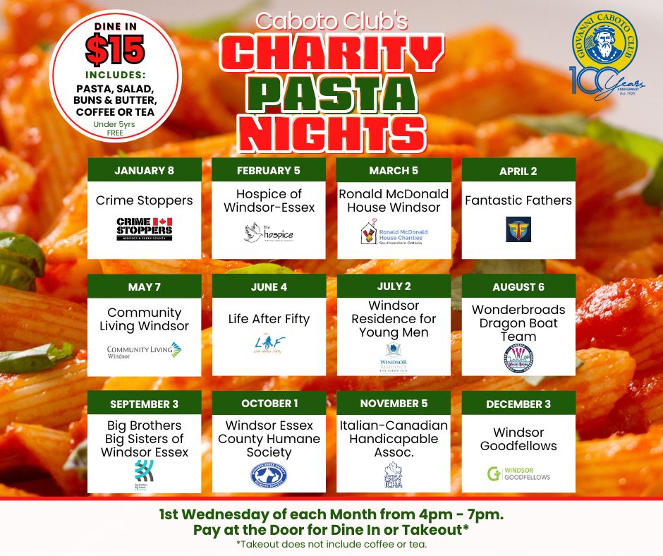 Join the pasta party on Wednesday, November 5th at Caboto Club’s Charity Pasta Night, hosted by the charity: Italian-Canadian Handicapable Association. For just $15, dive into Caboto’s legendary meat or...