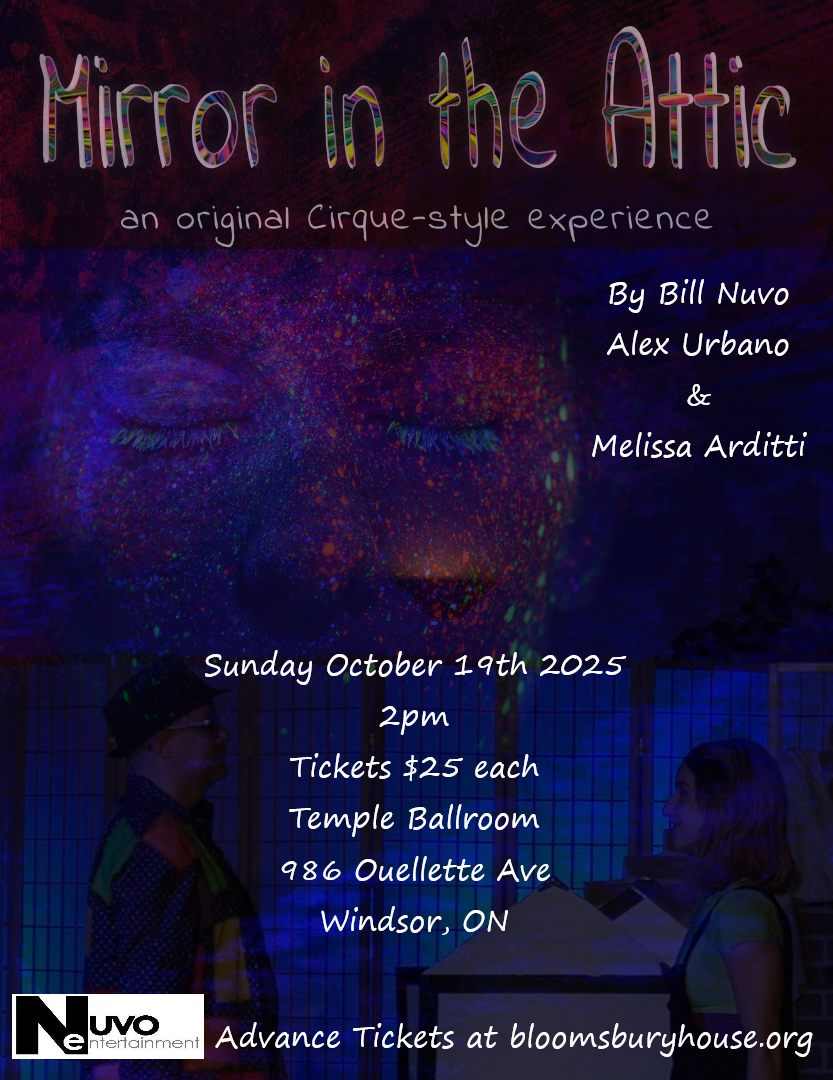 Mirror in the Attic – an original Cirque-style experience One Show Only! With special guest opening performances! Sunday October 19th, 2pm At the Temple Ballroom, 986 Ouellette Avenue Tickets $25...
