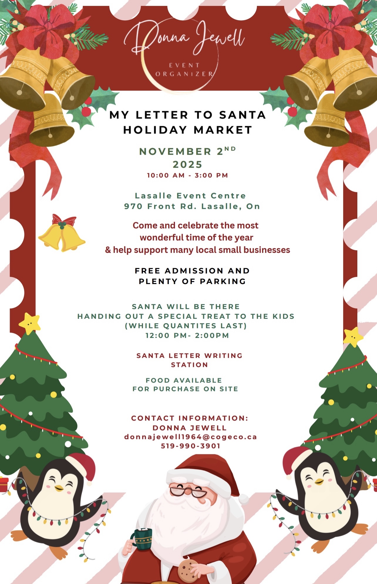 Come out and support small local businesses while finding that unique gift for that special someone. Food for purchase on site. Santa will be there from 12:00 to 2:00 pm...