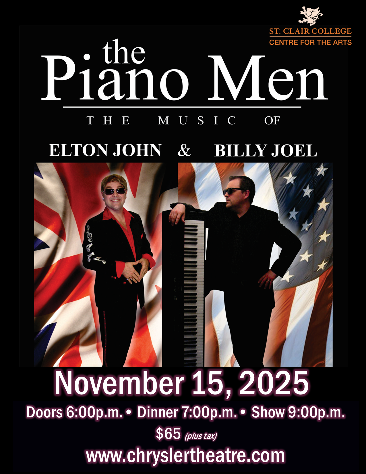 The Music Of Billy Joel and Elton John Doors open at 6pm, Dinner 7pm, Show 9pm Tickets: $65+taxes & fees